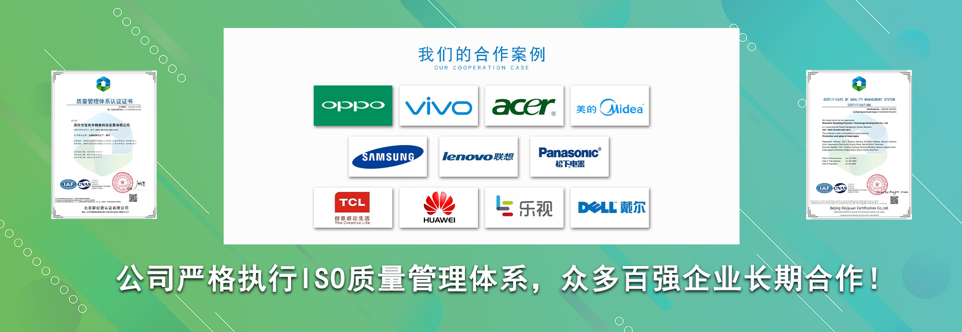 本公司與一些知名的企業(yè)都有合作,如:富士康、西鳳酒、茅臺(tái)、五糧液、恒旭包裝、聯(lián)想、華為、志高、建力高爾夫、東驊電腦、長(zhǎng)城電腦等,我們真誠(chéng)希望與您合作、為您服務(wù)。